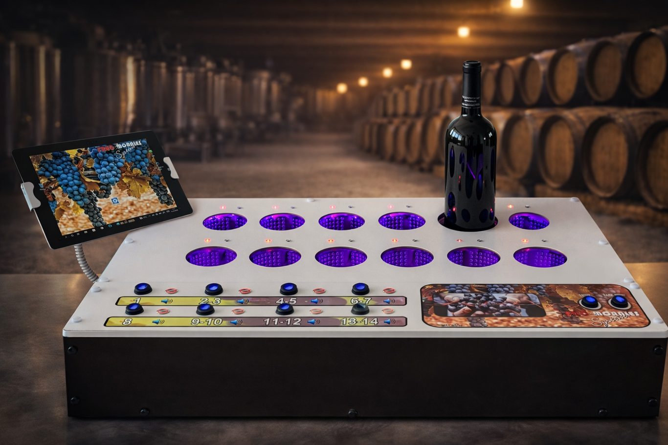 La tecnología ENOSYNC se basa en un sistema experimental diseñado para aplicar señales físicas controladas sobre líquidos durante periodos determinados.